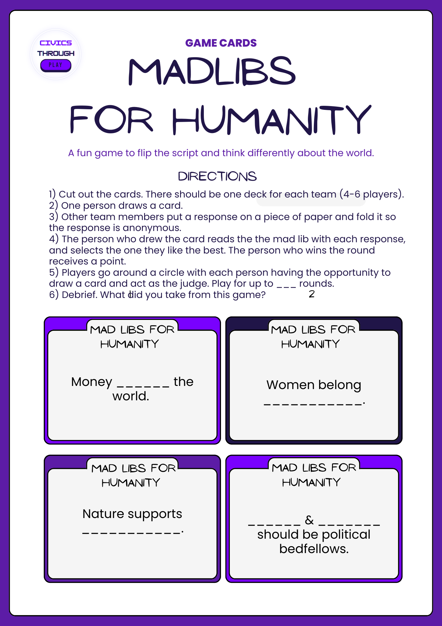 We create games and tools that turn politics into curiosity, connection, and conversation.